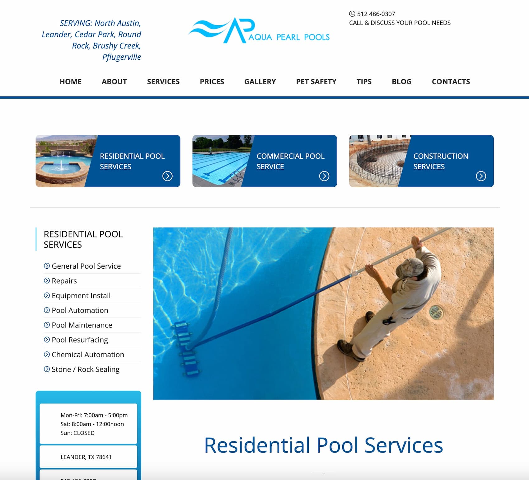 ClientAqua Pearl PoolsServicesRedesign, WordpressLinkaquapearlpools.com